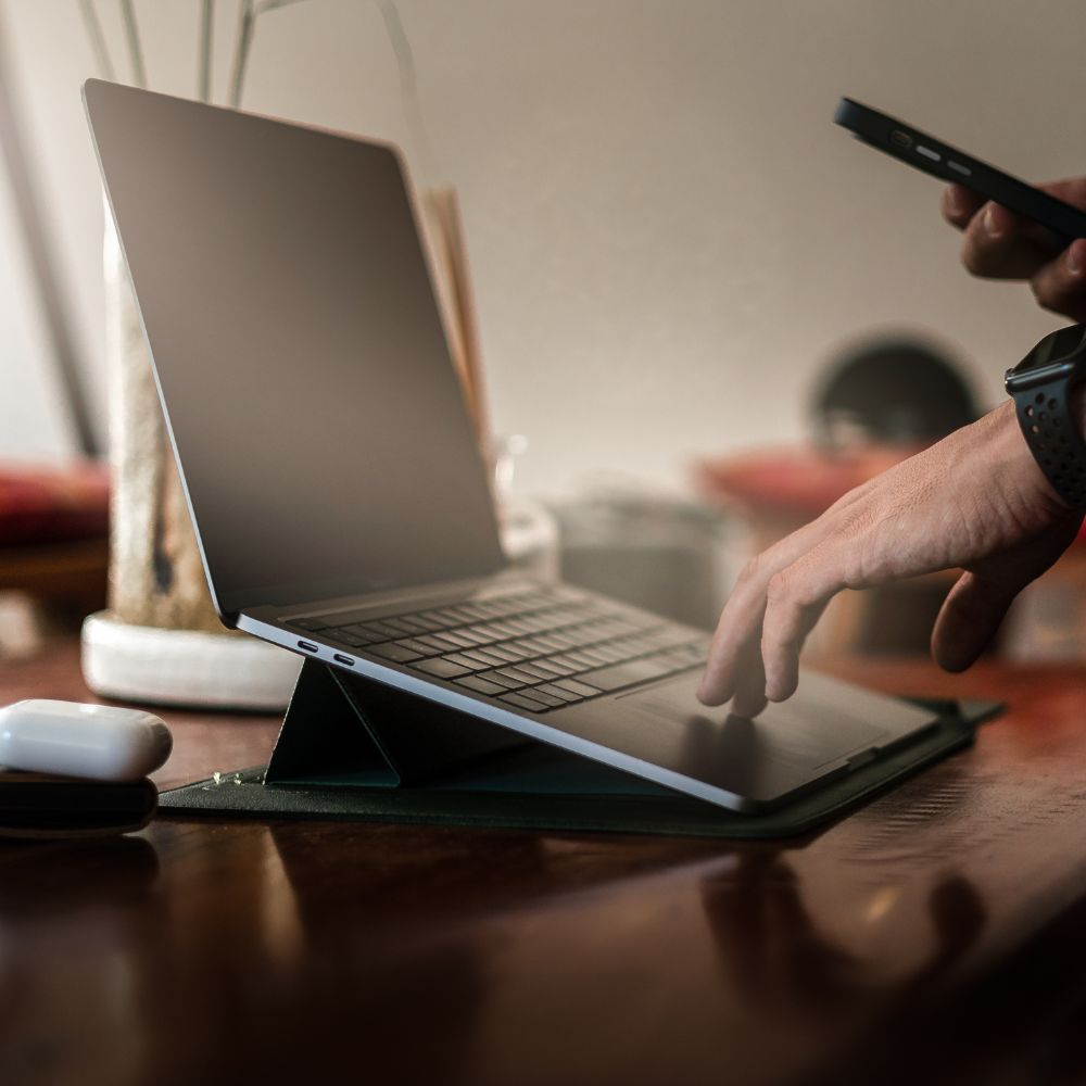 Convierte tu funda en un cómodo Work Station y goza de una mejor postura y ventilación para tu computador. Un 2 en 1 que te ahorrá espacio y protegerá tu computador de la mejor manera.
