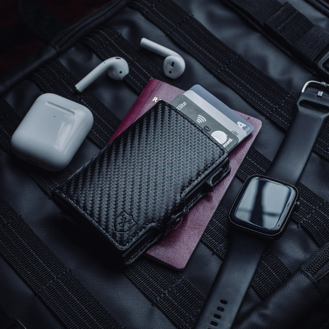 Simple, elegante y compacto. Diseñado para ahorrar espacio y simplificarte la vida. Todas tus tarjetas a un botón de distancia. Haremos que pagar sea entretenido y deslumbres a todos cada vez que muestres tu billetera.