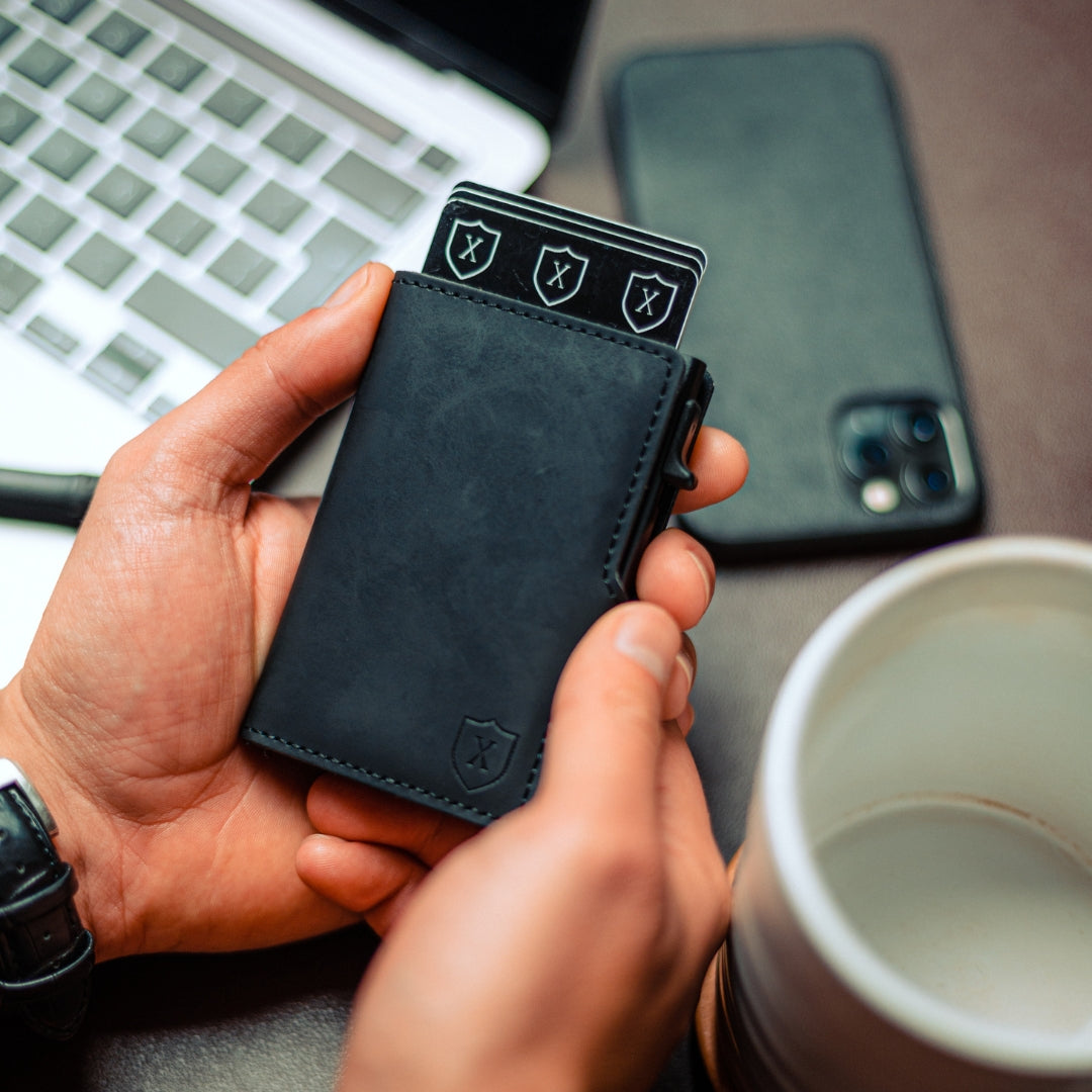- Tarjetero con deslizador incorporado con capacidad para 4-6 tarjetas, además, cuenta con bolsillos interiores para 4-6 tarjetas adicionales llegando a un total de 8-12 tarjetas por billetera. Incluye espacio para guardar múltiples billetes.