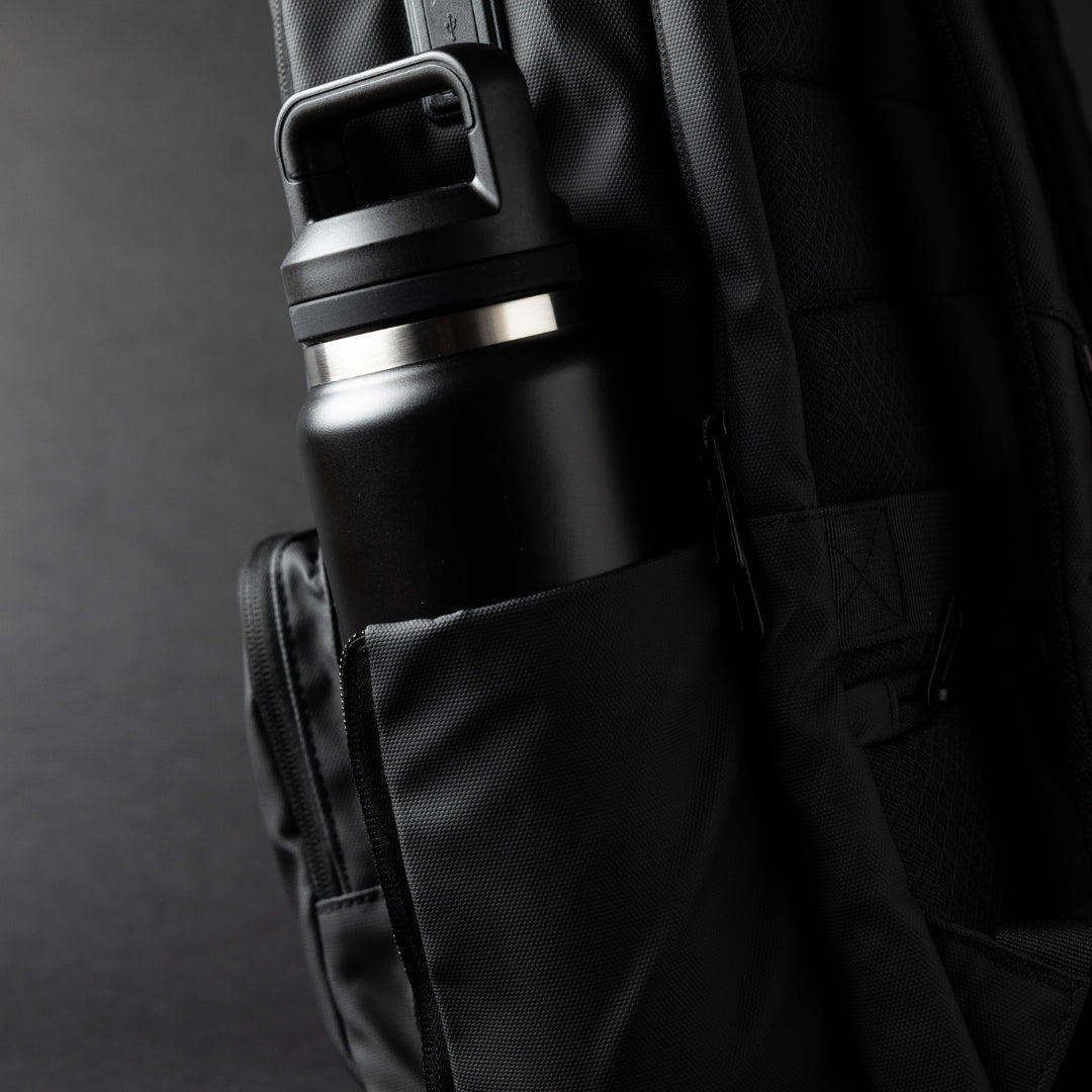 Cuenta con un compartimiento especial para llevar botellas de agua, además de un gran compartimiento principal y otro más pequeño y acolchado para notebooks.