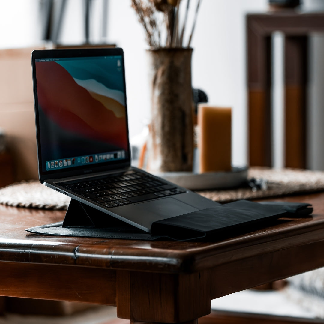 Convierte tu funda en un cómodo Work Station y goza de una mejor postura y ventilación para tu computador. Un 2 en 1 que te ahorrá espacio y protegerá tu computador de la mejor manera.